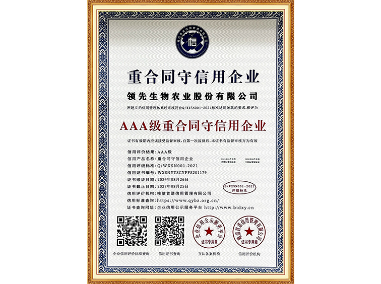 AAA级重条约守信用企业